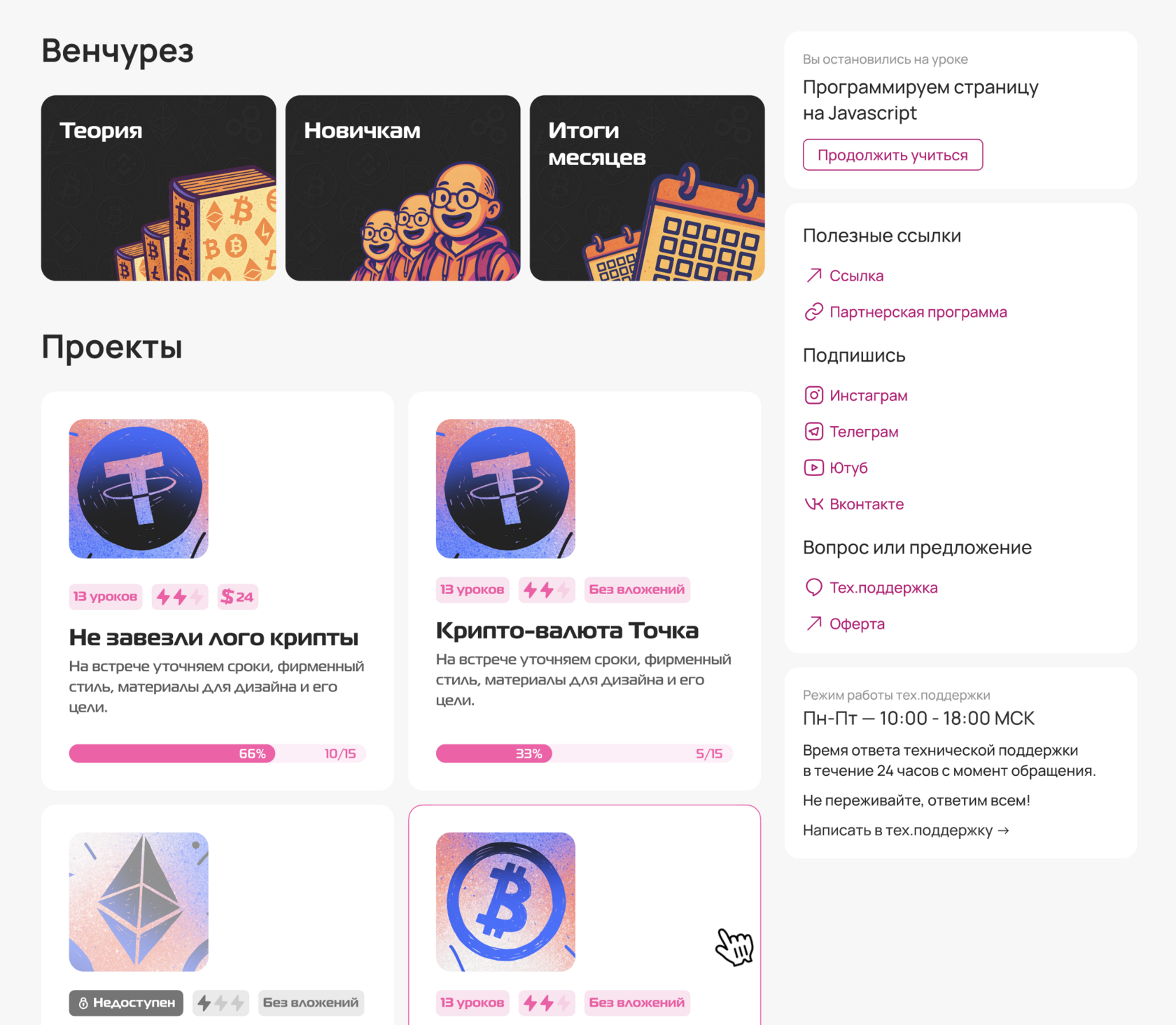 Страницу курса тоже хотелось обновить, но не сильно. Чтобы обновление не затянулось по времени и стоимости.